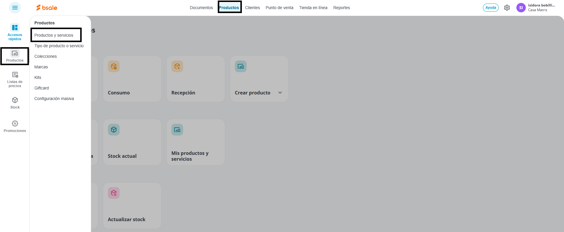 Seleccionamos Productos y luego hacer clic Productos y Servicios.