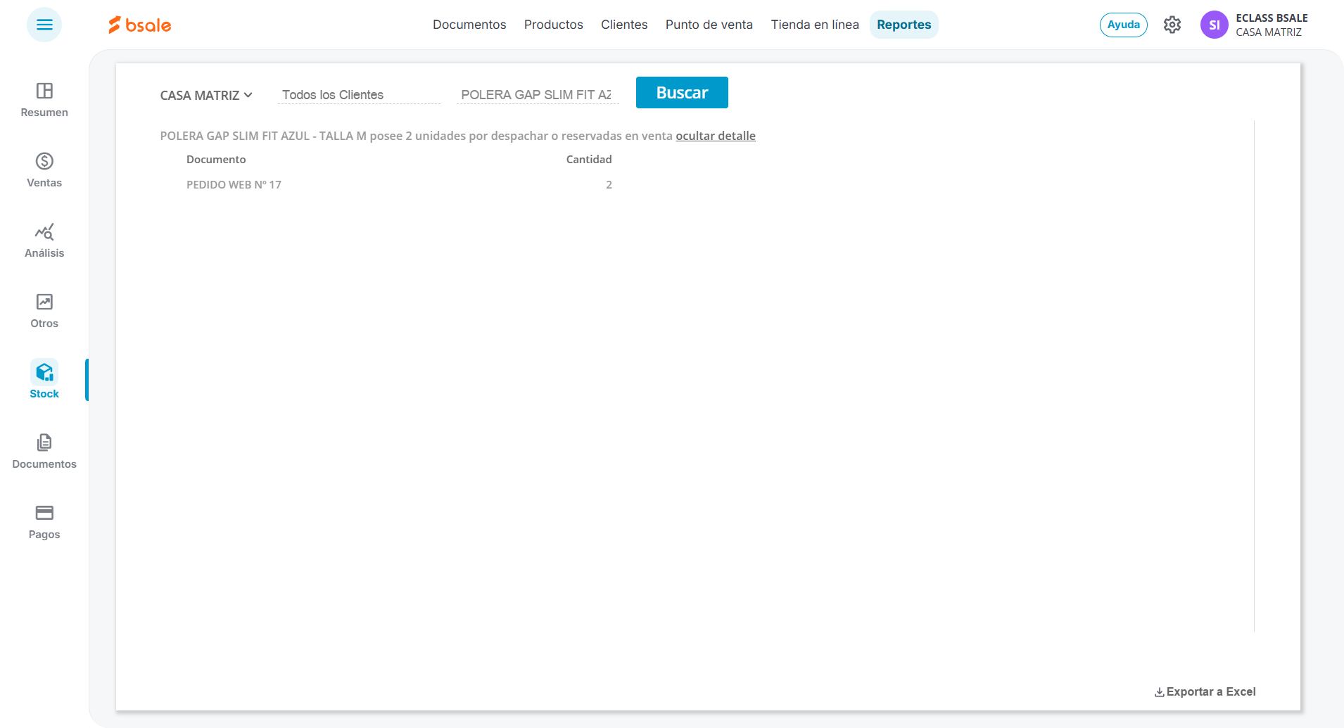 Se abrirá una nueva pestaña donde podrás ver los documentos que están reservando el stock del producto y podrás ver el porqué y donde aparecen esas unidades o cantidades.