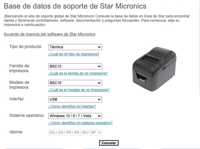 1.- Ir al link: https://www.starmicronics.com/es/support/default.aspx