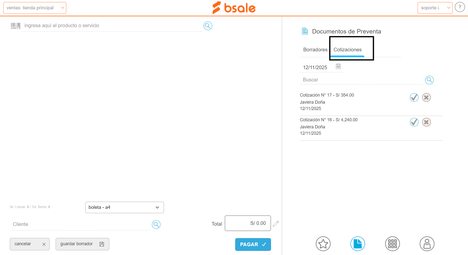En este manual te enseñamos cómo generar un documento de preventa como una cotización o una nota de venta por el punto de venta (POS).Esta funcionalidad está disponible para la versión de escritorio y para la APP Bsale.