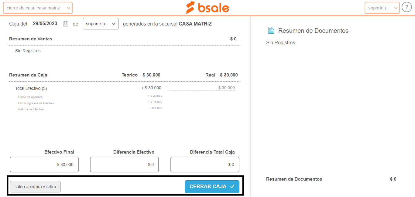 El módulo de Cierre de Caja permite revisar las ventas que se han efectuado durante el día o durante el turno de un vendedor. Es muy importante para llevar un correcto control de tus ventas y flujo de dinero, que el valor del cierre de caja al final del día sea exacto y concuerde con el dinero facturado.