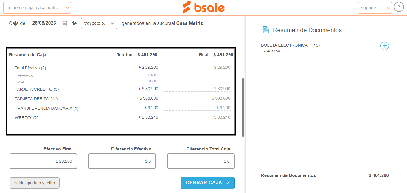 Para evitar pasar horas cuadrando la caja, ya sea porque falta efectivo, se pierde algún comprobante o no hay un registro de las salidas y entradas de efectivo, te recomendamos usar la funcionalidad de cierre de caja de Bsale.