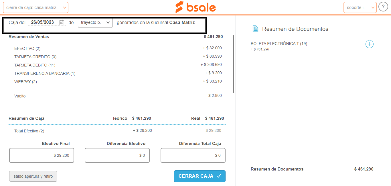 Los cierres de cajas puedan configurarse por usuarios que emiten los documentos, también llamados emisores de documentos, o por sucursal.