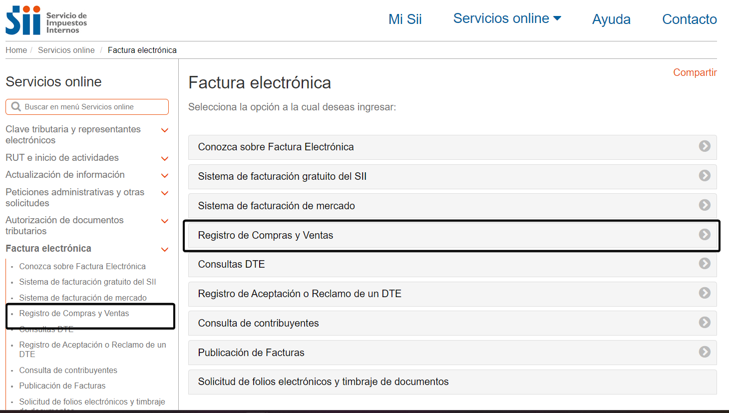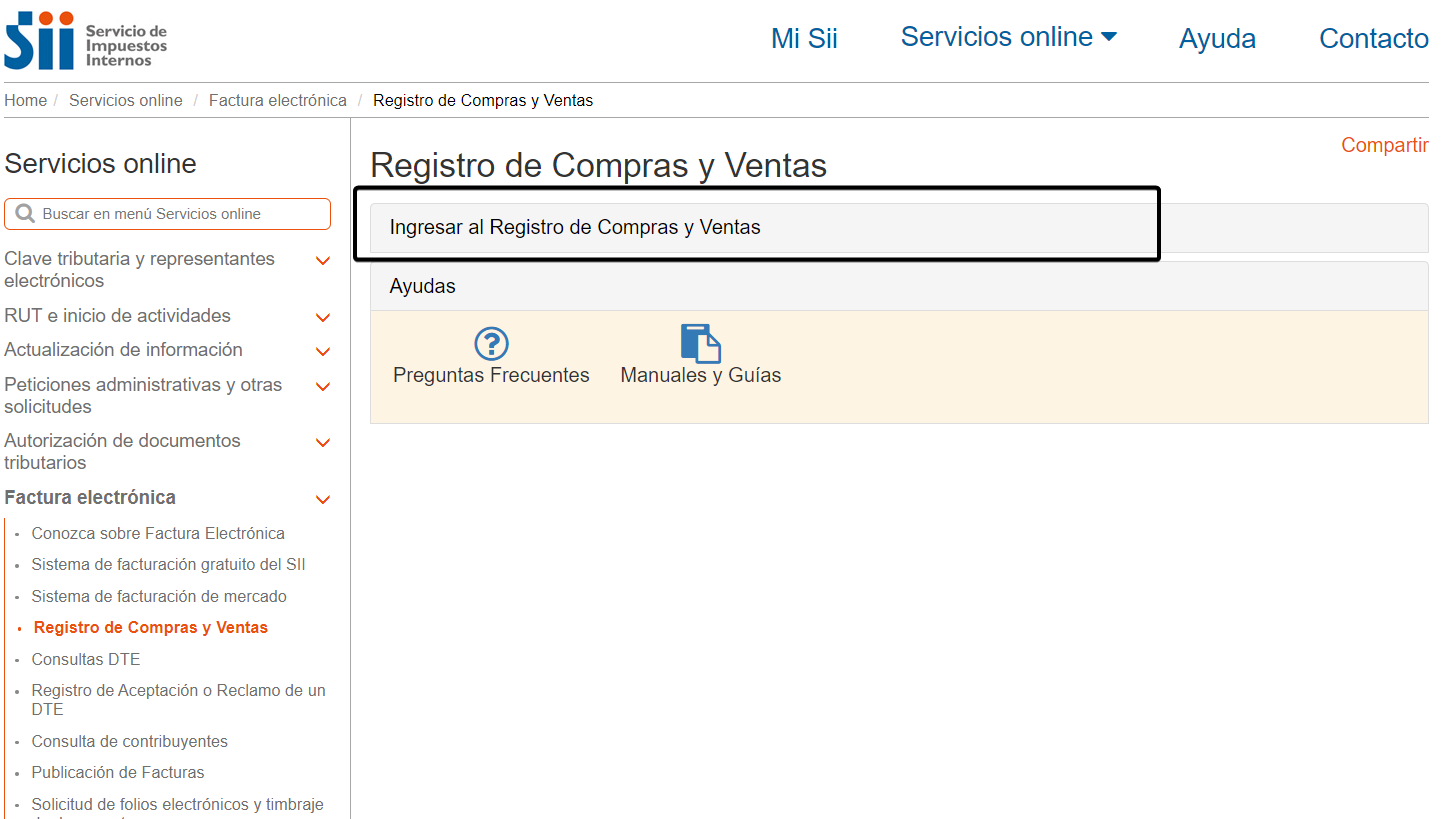 3. Accede a tu registro de compra y Venta, desde el portal del SII www.sii.cl