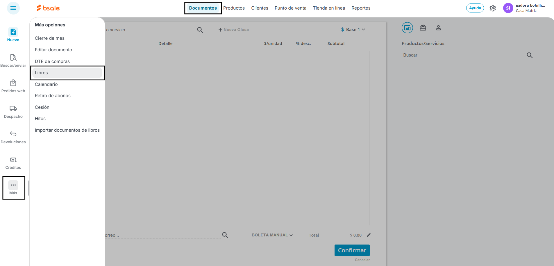 Ingresa a Documentos, luego a Más en el menú de la izquierda y finalmente a Libros