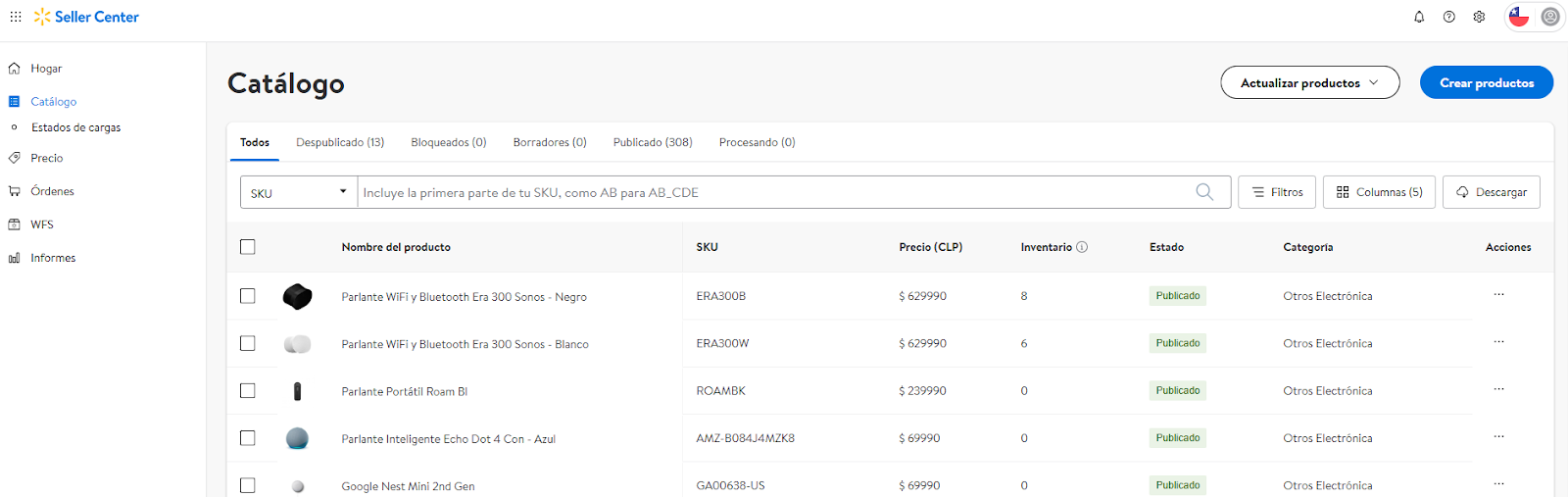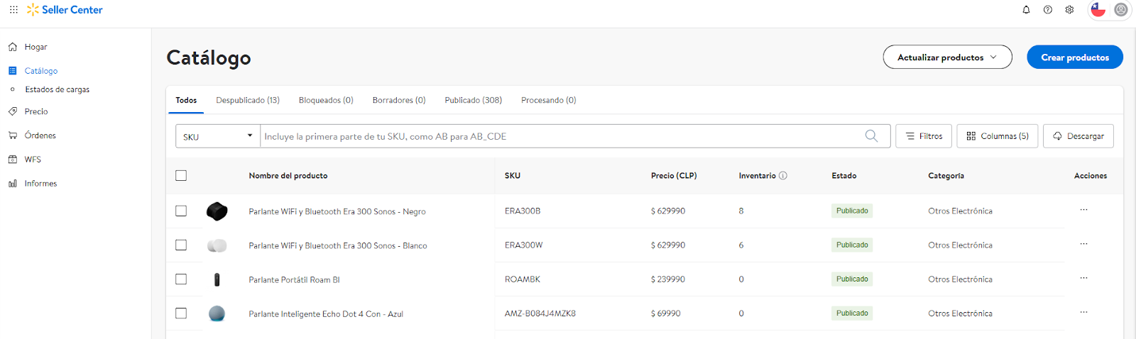 Nota: esta integración no cambia, desde Bsale, los estados de los productos en Walmart.
