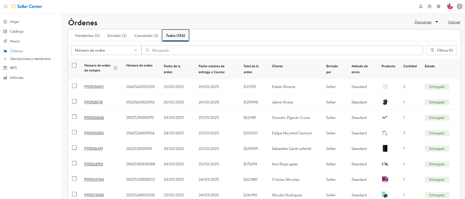 - Emitir boletas y facturas de forma automática: se envían al Seller Center de Walmart una vez que la orden quede lista para despacho en el portal. En la boleta quedará el número de orden asociado a la venta. En caso de querer hacer un tipo de documento distinto puedes configurarlo.