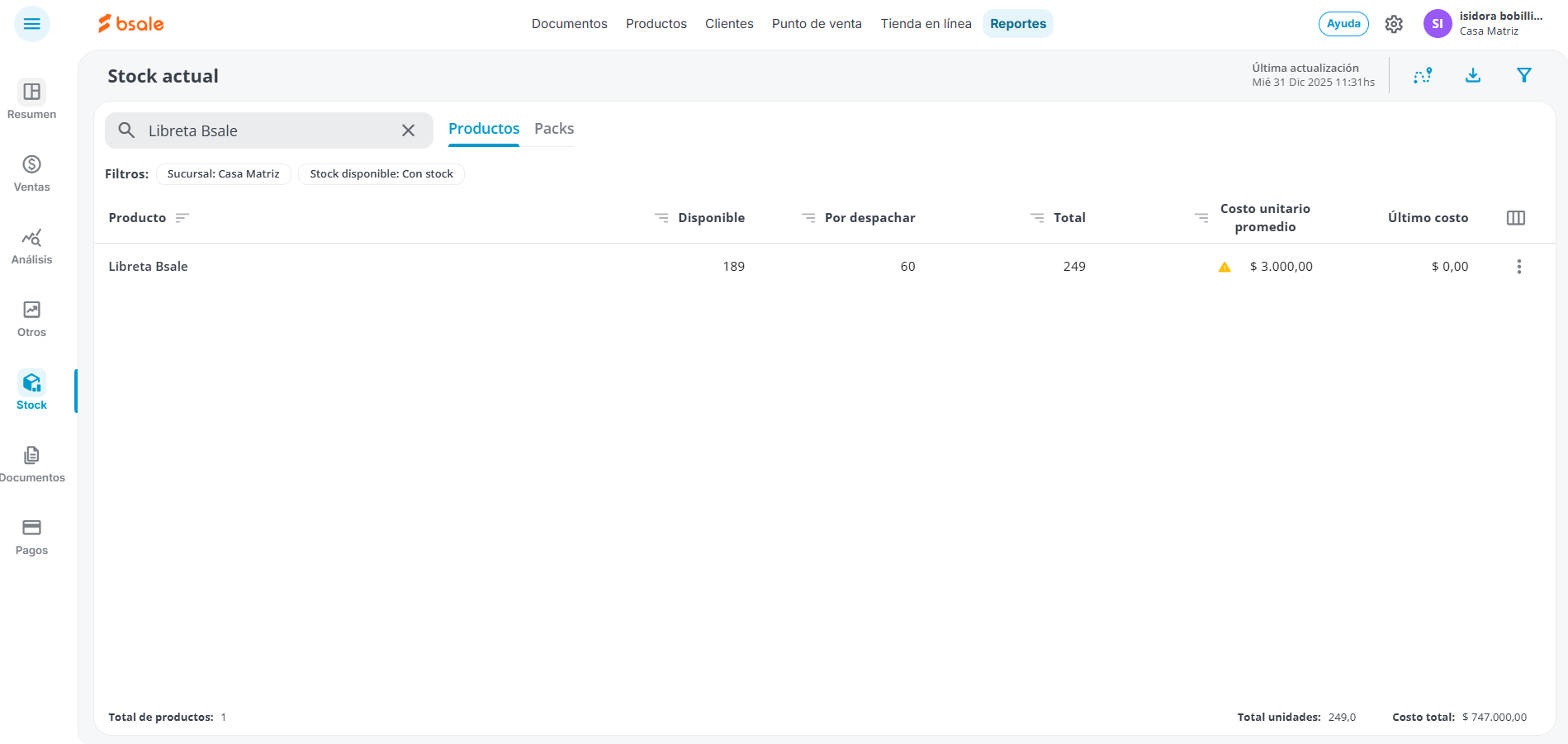 Una vez encendida la integración, se enviará de manera automática el stock disponible en Bsale a Walmart para cuadrar. Esta integración funcionará con las siguientes secciones dentro de tu cuenta de Bsale: