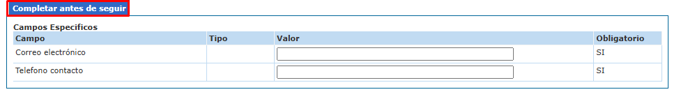 6. Observará una pantalla con la solicitud en proceso; debe hacer Click en COMPLETAR SOLICITUD, aparecerá un Pop Up de mensaje> debe seleccionar ACEPTAR.