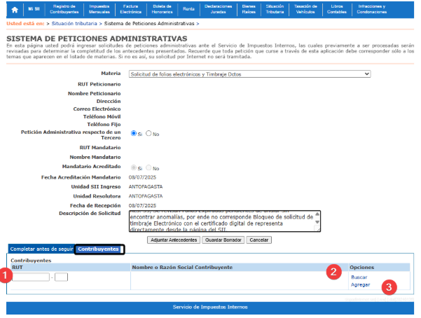 4. Contribuyentes: RUT el de la empresa> Buscar>Agregar