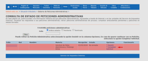 - Para enviar exitosamente el formulario De Solicitud, debemos validar que se haya realizado previamente Revisión de Folios Expirados .