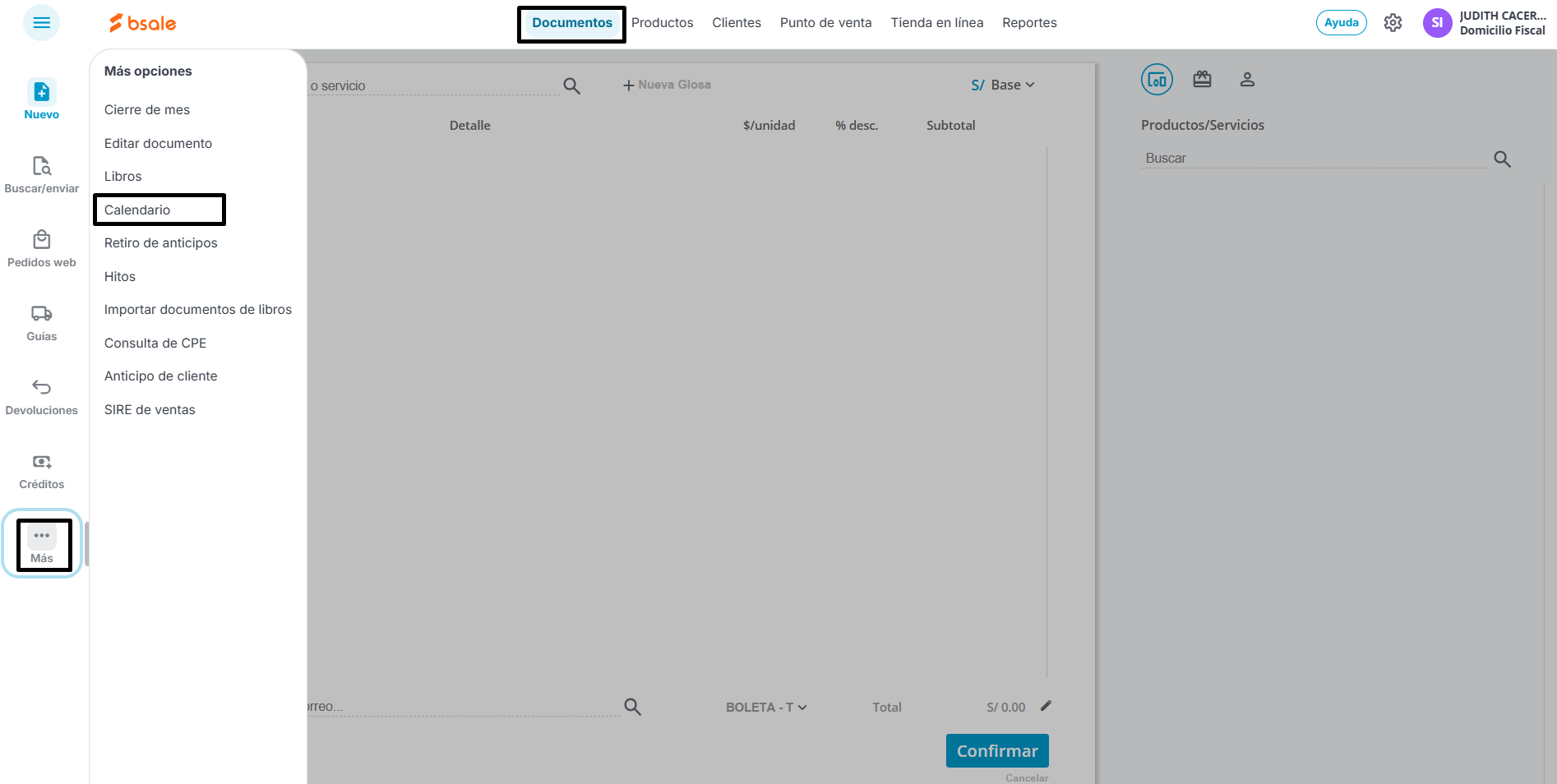 Hacemos clic en Documentos, clic en Más ubicado en la parte izquierda de la pantalla y seleccionamos la opción de Calendario.