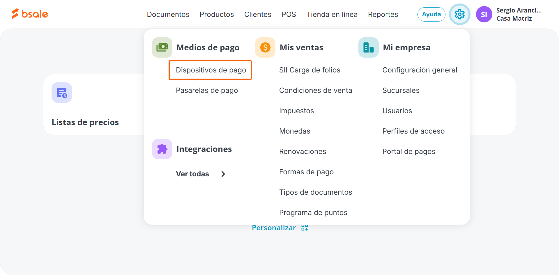 - Ingresa a Engranaje > Medios de pago y presiona en Dispositivos de pago.