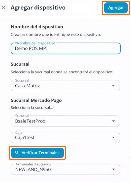 - Selecciona el número de serie del terminal y presiona Agregar.