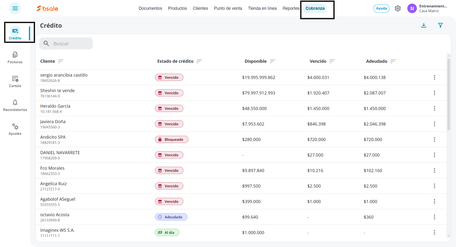 Nota: Esta pantalla es clave para realizar una cobranza preventiva y evitar que la morosidad afecte tu flujo de caja.1. Acceder a la sección de Crédito