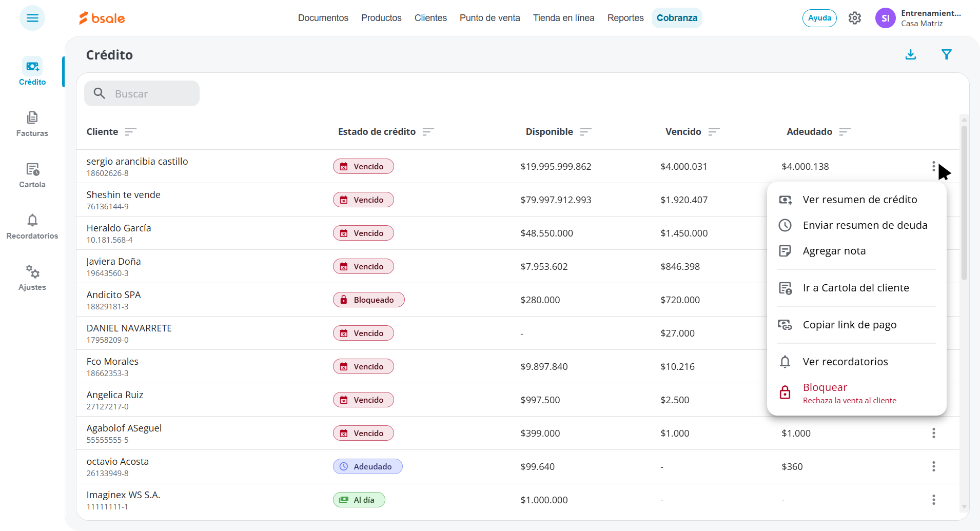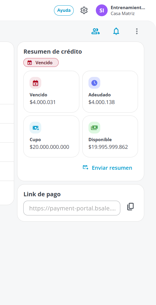 - Disponible: Te indica cuánto más puede comprar este cliente antes de alcanzar su límite de crédito.