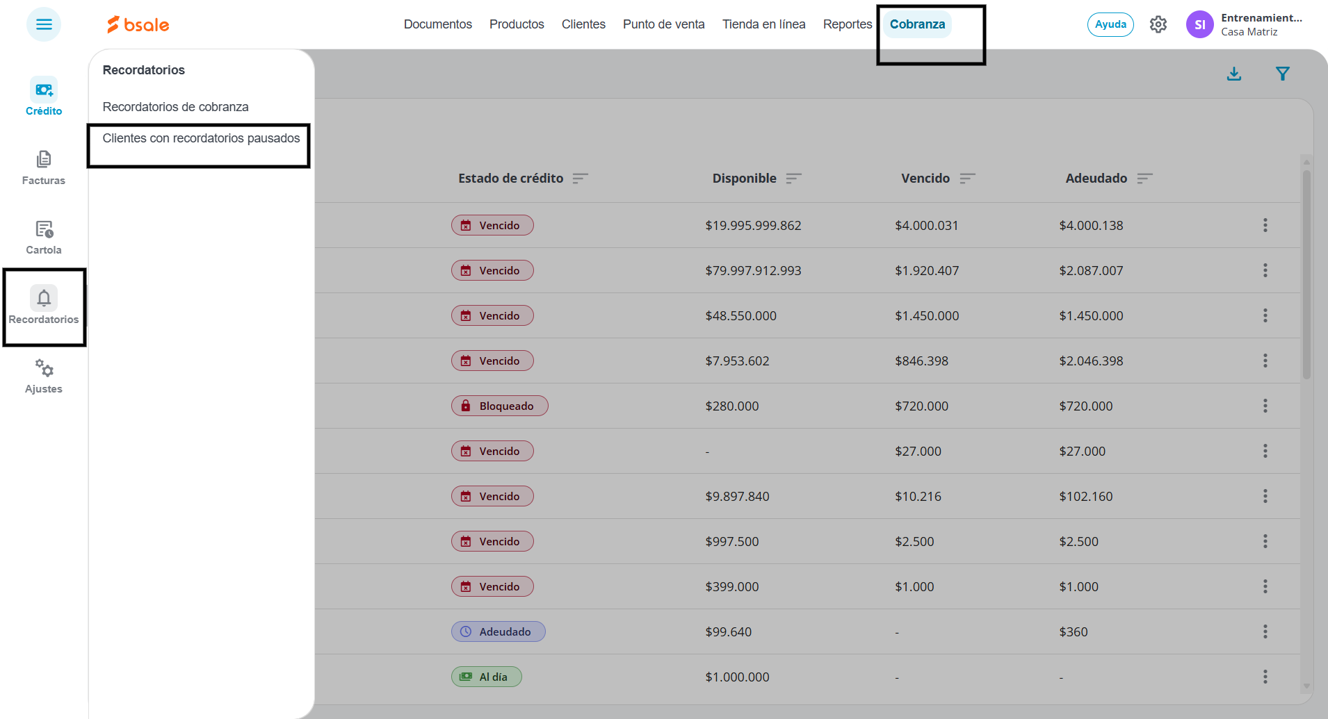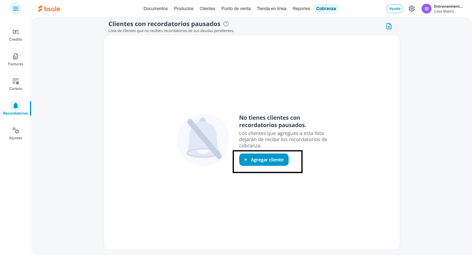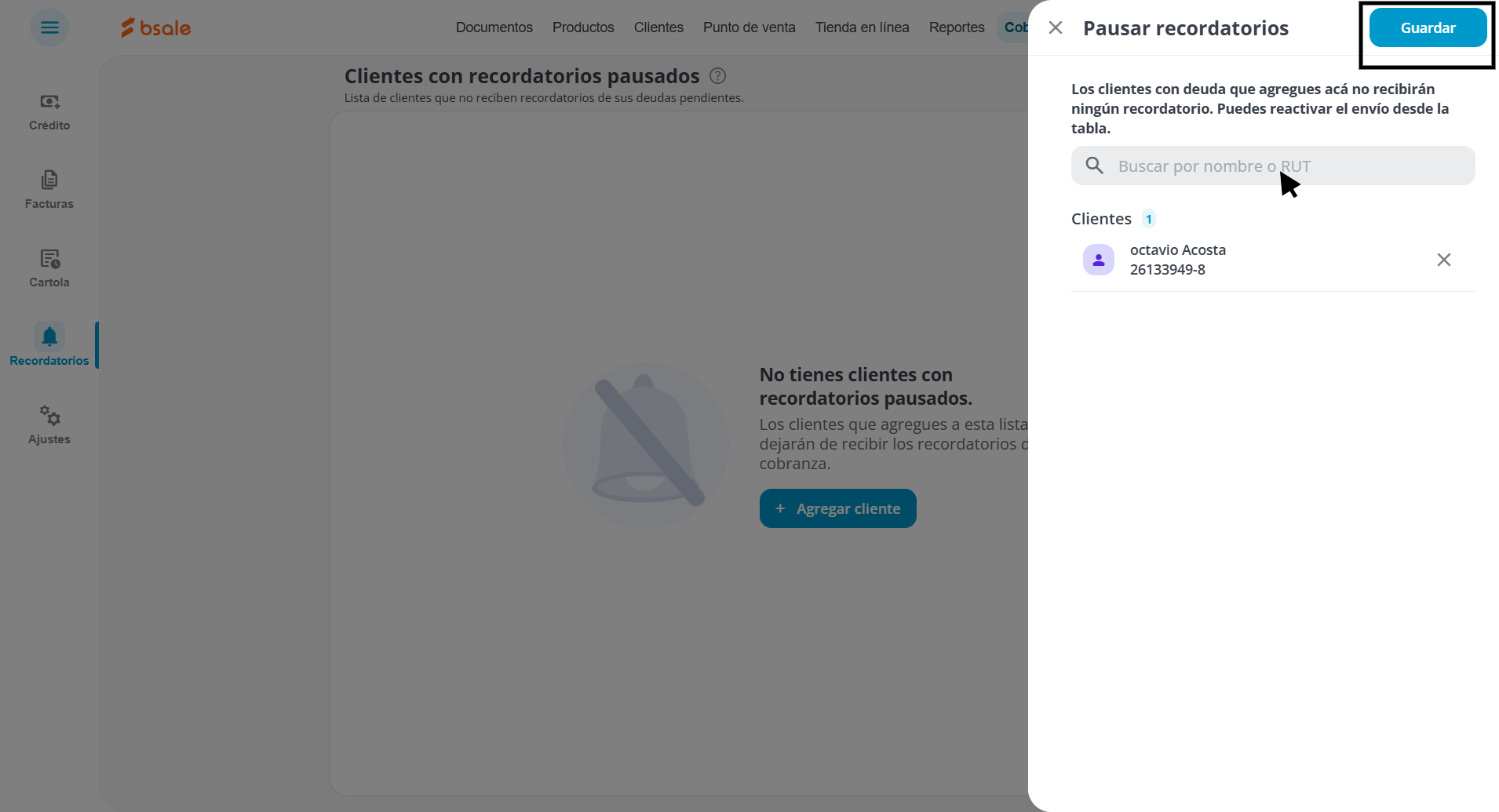 - Sigue la ruta: Cobranza luego Recordatorios y por último: Clientes con recordatorios pausados.